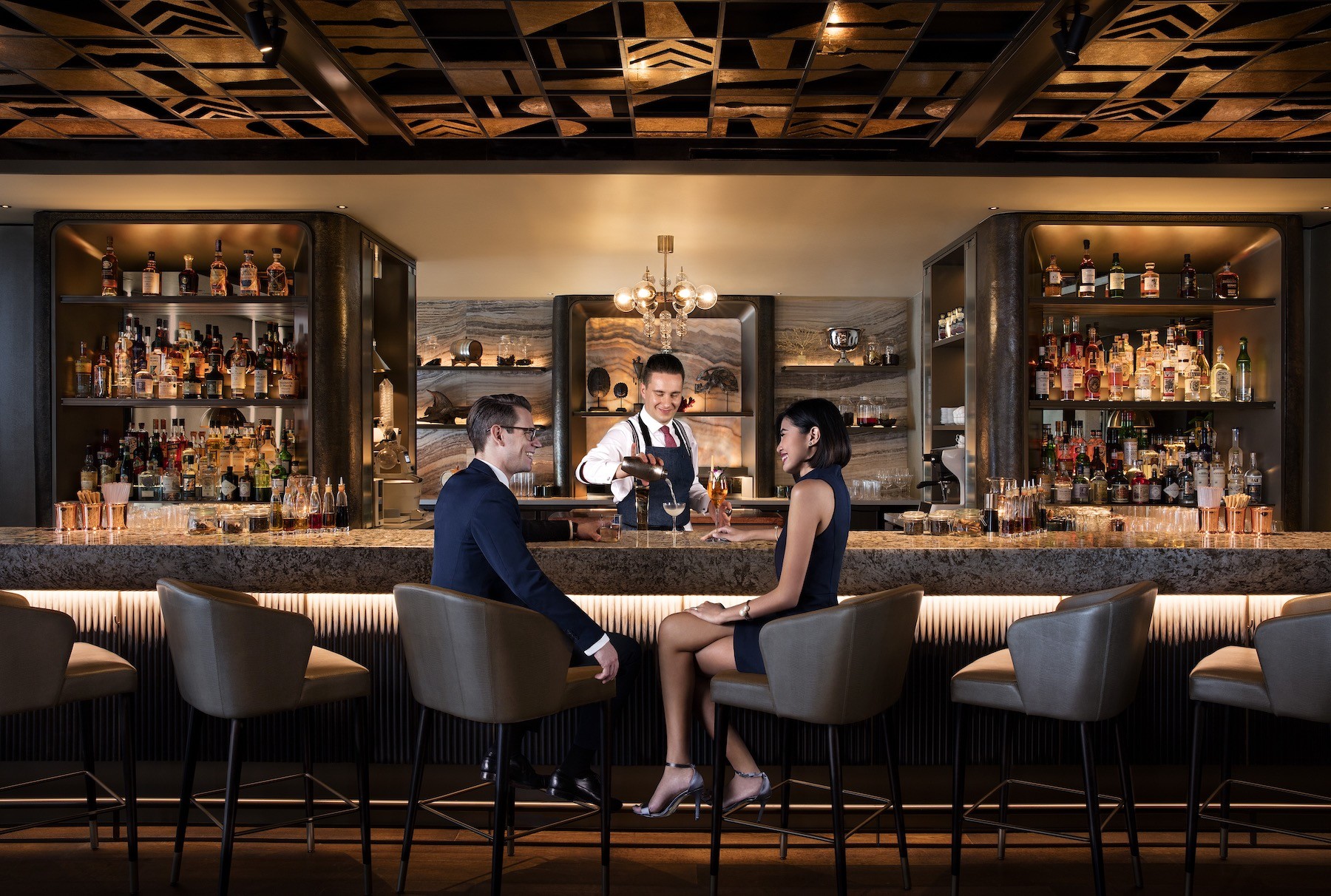 The third floor of Mandarin Oriental's Marina Bay address places MO Bar at a particular angle to the city: the bay opens in front of you, the financial district rises behind, and you are, for a moment, suspended between the colonial-era ambitions that shaped this waterfront and the contemporary financial architecture that replaced them. It is a setting that could easily become a passive backdrop for a safe hotel bar program. MO Bar has chosen to do something more deliberate with it.