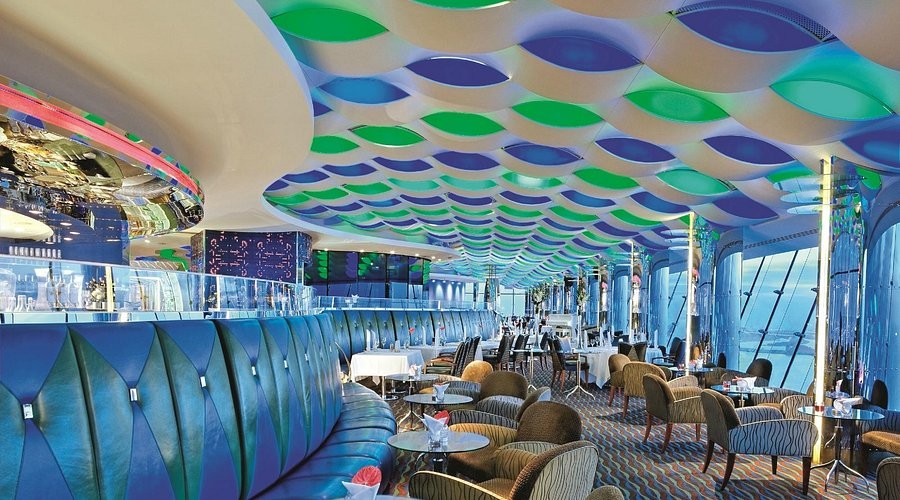 The experience unfolds within a space defined by floor-to-ceiling windows that wrap around the bar, creating an immersive panorama of Dubai's skyline and the Arabian Gulf beyond. Plush seating arrangements encourage intimate conversation while maximizing the spectacular vistas, with carefully orchestrated lighting that enhances the evening ambiance as city lights begin to twinkle below. Live music performances add sophisticated energy to the atmosphere, while the smart elegant dress code ensures every guest contributes to the refined environment. Service operates at the impeccable standards expected of the Burj Al Arab, with staff providing personalized recommendations and maintaining the discreet professionalism that defines luxury hospitality.