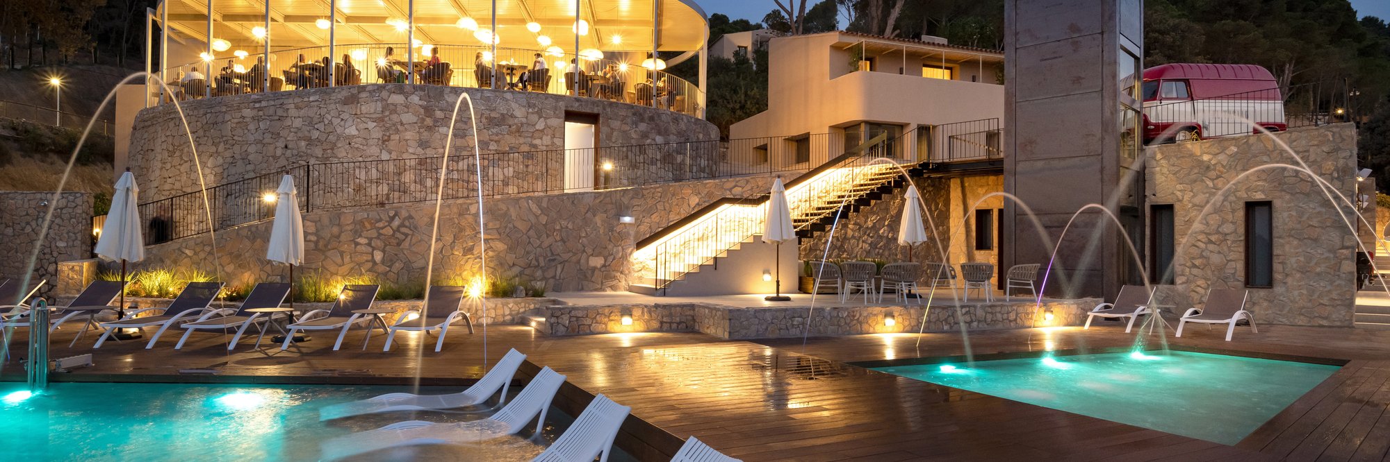 At that scale, the question for any eco-positioned property is how the design language communicates the environmental intent without becoming decorative greenwashing. On the Costa Brava, where the surrounding pine forest and granite-boulder coastline already provide a strong visual identity, the stronger design choice is typically restraint: materials that read as continuous with the landscape, building footprints that avoid competing with the tree line, and communal spaces oriented to capture the Mediterranean light without heavy intervention. How successfully Talaia Plaza executes that program is, without on-site verification, a matter the property's eco-resort designation implies rather than guarantees.