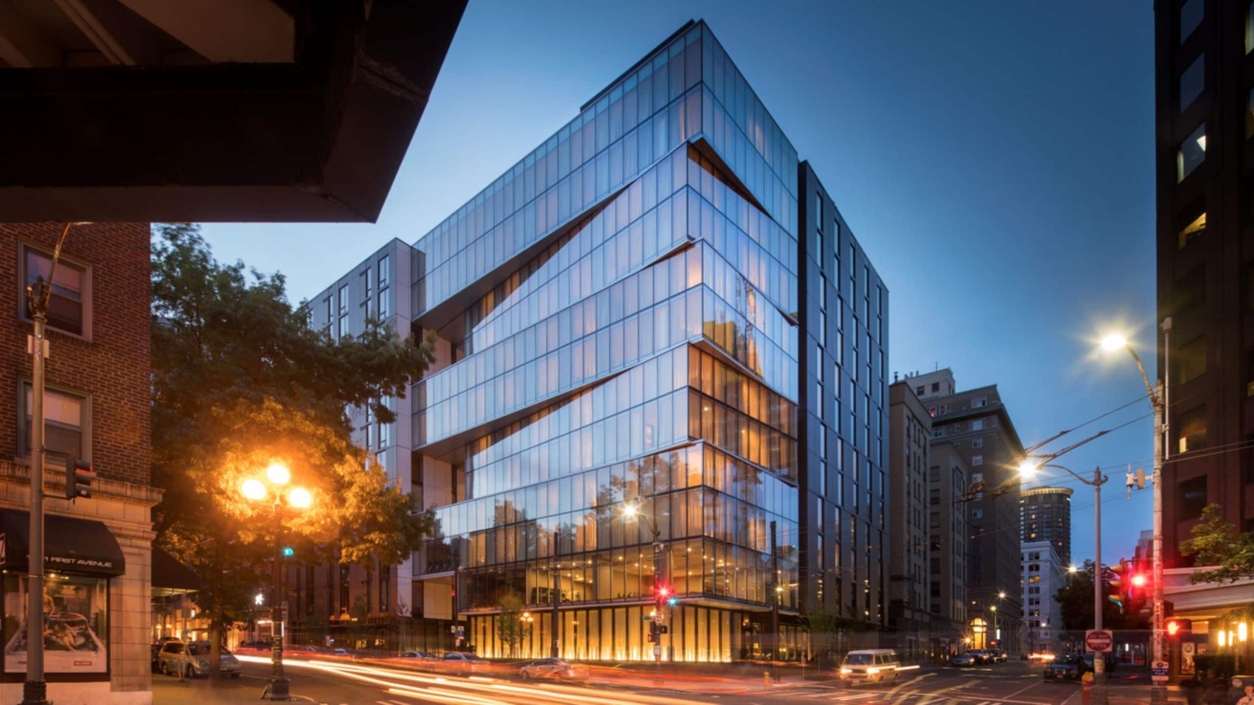 Where geometric glass architecture meets Pacific Northwest sophistication, Thompson Seattle commands downtown's cultural epicenter with Olson Kundig's striking 12-story design that captures the city's creative spirit and commanding waterfront views. Opened in 2016, Thompson Seattle represents the Thompson Hotels brand's pioneering arrival in the Pacific Northwest, embodying the collection's signature ethos of "Culture Lives Here." Designed by renowned Seattle architectural firm Olson Kundig, this boutique luxury hotel features a distinctive geometric glass structure that resembles stacked, misaligned blocks—a bold architectural statement that mirrors the irregular street grid below. Studio Munge and Jensen Fey crafted interiors that blend minimalist modernism with reclaimed Pacific Northwest materials, creating spaces that feel both refined and authentically local. The property has quickly established itself as a cultural hub for Seattle's creative community, attracting artists, entrepreneurs, and discerning travelers seeking meaningful connections. Thompson Seattle's 158 guestrooms showcase midcentury modern design philosophy across 30 unique floor plans, ensuring no two stays feel identical. Eight corner studios and two suites feature expansive floor-to-ceiling windows that frame panoramic vistas of Puget Sound and the Olympic Mountains, while marble-clad bathrooms with rain showers provide spa-like sanctuaries. Water Corner Studios and Water View Studio Suites offer double exposures for maximum natural light and sweeping waterfront perspectives. Custom 400-thread-count Sferra linens dress plush beds, while D.S. & Durga bathroom amenities and curated honor bars featuring local craft beer reflect the hotel's commitment to supporting regional artisans. Smart TV technology and hardwood floors complete the sophisticated yet comfortable aesthetic. Scout restaurant, operated by Huxley Wallace Collective, delivers culinary experiences that celebrate Pacific Northwest ingredients and innovative techniques. The crown jewel remains Nest rooftop bar and lounge, accommodating 250 guests across indoor and outdoor spaces complete with firepits and unobstructed city views. Over 5,000 square feet of meeting space includes the distinctive open-air courtyard, accessible from both street and alley, creating unique venues for corporate gatherings and social events. While Thompson Seattle doesn't house a traditional spa, in-room treatments through local providers maintain the wellness focus, and 24-hour room service ensures seamless hospitality. For luxury travelers seeking Seattle's most culturally connected address, Thompson Seattle offers an unparalleled base for exploring Pike Place Market, waterfront museums, and the city's thriving arts scene. Book water-view accommodations on the seventh floor or above for unobstructed Puget Sound vistas, and consider visiting during summer months when the rooftop experience reaches its peak. En Primeur Club members enjoy exclusive upgrade opportunities and personalized concierge services.