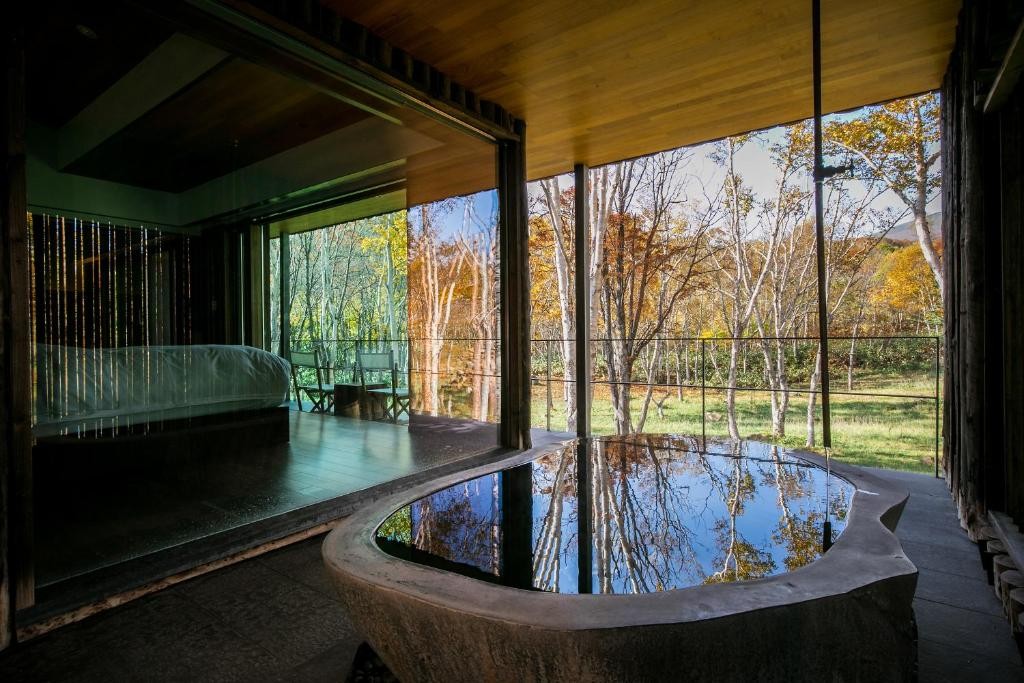 Beyond the private onsens, Zaborin's amenities reflect its commitment to holistic luxury. The natural spring water extends throughout the property, providing under-floor heating and pathway snow-melting systems that ensure year-round comfort. The forest setting offers complete privacy and tranquility, while traditional ryokan services maintain the highest standards of personalized attention with only fifteen villas ensuring exclusive, intimate hospitality.