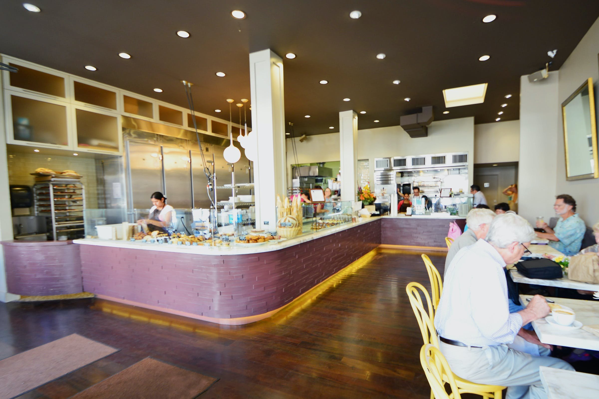The café’s design favors a relaxed salon de thé feel with an emphasis on display and craft. An open pastry kitchen anchors the space, allowing guests to watch laminating, piping, and glazing. Seating is casual; patrons order at the counter and choose indoor or outdoor tables that catch neighborhood light. Materials are clean and modern, focused on functionality so the pastry case remains the visual centerpiece. Service is straightforward and informed—staffers can describe ingredients, accommodate vegetarian and some vegan options, and point to weekend specialties. The atmosphere is lively during morning rushes and pleasantly calm by mid-afternoon, ideal for tasting multiple pastries or a tartine and juice.