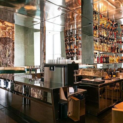 Rising from the cultural heart of Arles, Drum Café occupies a privileged perch within Frank Gehry’s shimmering Tower at Luma—a destination where contemporary art, architecture, and cuisine converge. The moment you step inside, the space envelops you in quiet grandeur: cathedral-high ceilings, an arresting stainless-steel bar that glows like sculpture, and an elegant hush that heightens anticipation. Materials whisper of Provence’s terroir and texture—recycled elements and Arlesian merino wool lend tactility and warmth—creating a refined, sustainable mise-en-scène that feels as forward-thinking as it is timeless.