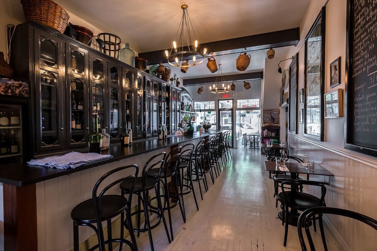 The intimate 45-seat space exudes rustic sophistication with white brick walls, pressed tin ceilings, and an open kitchen beneath a striking ocean liner painting by co-owner Fred Morin. Wooden tables encourage communal dining, while the charming back terrace provides additional seating during Montreal's precious warm months. The natural wine program, curated by sommelier Max Campbell of Deux Caves, features an adventurous selection of approximately 20 wines by the glass, emphasizing small French, Spanish, and Italian producers practicing biodynamic viticulture. Handwritten chalkboard menus reinforce the restaurant's approachable yet serious commitment to discovery.