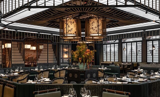 Most restaurant spaces inside a casino-retail complex default to a certain kind of drama: marble floors, ambient lighting calibrated to feel timeless, and design that signals spend without saying anything particular about place. The Mott 32 Singapore space at Marina Bay Sands takes a different route. Designer Joyce Wang — who also shaped the Hong Kong original — went considerably greener here, covering walls in live plants, threading leaf-printed cushions through the booths, and anchoring one dining alcove, the Orangery, in an overgrown foliage canopy that somehow reads as composed rather than chaotic. The result sits closer to a conservatory than a Chinese restaurant, which is either a provocation or a statement, depending on your prior expectations of Cantonese fine dining in Singapore.