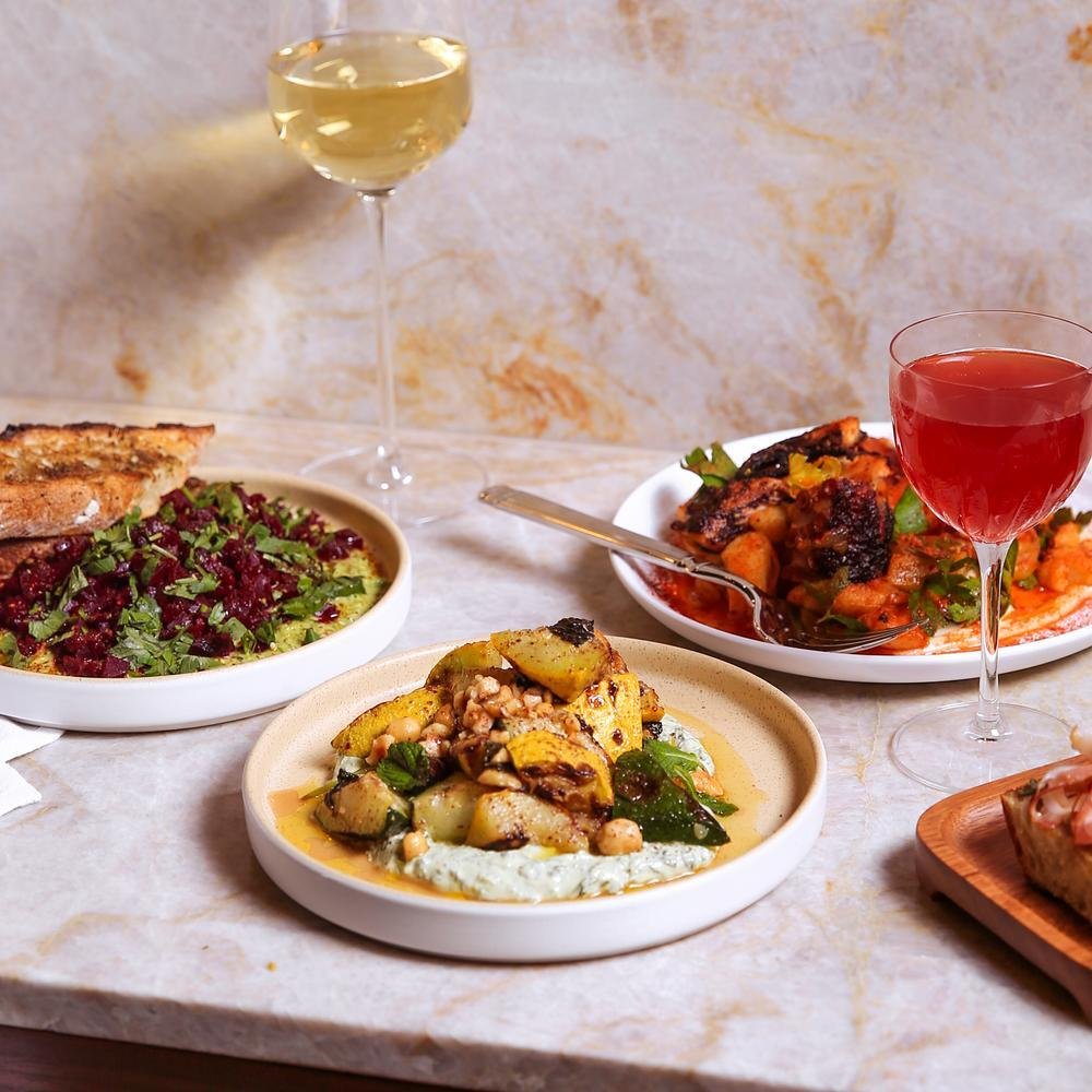 The kitchen runs under Tõnis Siigur and Roman Sidorov, a pairing that already signals something about the restaurant's positioning. Mediterranean cuisine has always been a genre defined by synthesis , Levantine, Iberian, North African, and Italian influences folding into each other across centuries of trade-route cooking. A dual-chef model in a room like this is less an administrative arrangement than an editorial one: two palates negotiating a cuisine that is itself the product of negotiation. The output, as the OAD scores and Michelin recognition suggest, holds together rather than pulls apart.