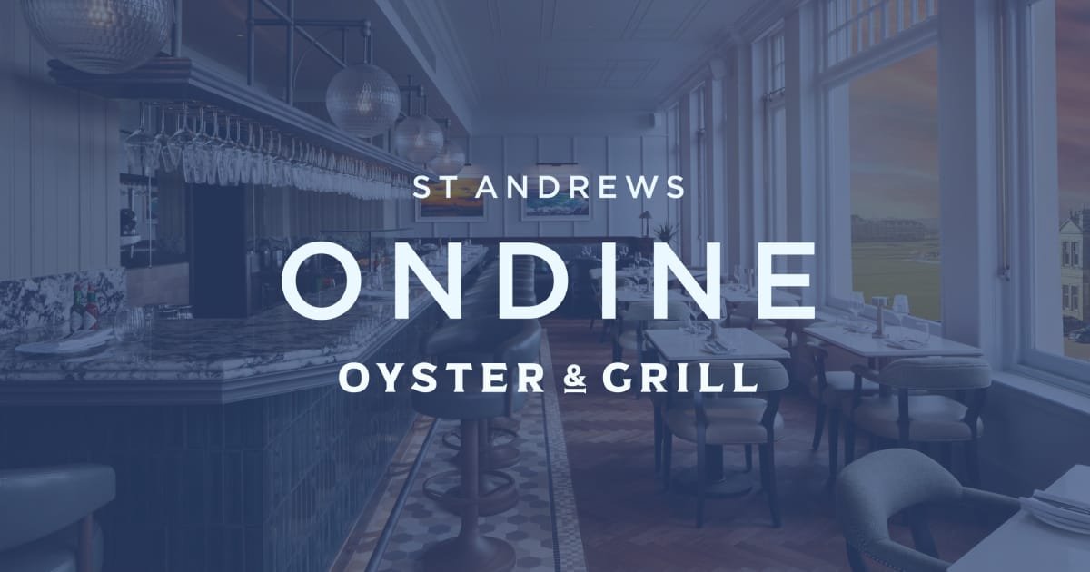 Ondine in St Andrews sits within Seaton House, where a contemporary Scottish seafood menu meets West Sands beach views. The dining room opens toward the sea and a prominent Oyster Bar anchors the room; this is a restaurant that puts East Coast shellfish at the centre of the meal. Contemporary Scottish Seafood is the guiding idea here, and it arrives as oysters on the half shell, fish soups brightened with saffron, and sole prepared in classic European technique. Reservations are available via OpenTable or the restaurant website, and the location near the Old Course makes Ondine a natural stop for golfers and coastal explorers alike.